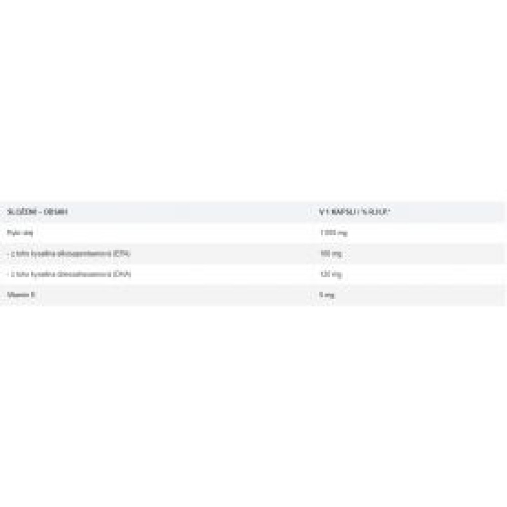 | الاسم الكيميائي | الأحماض الدهنية أوميغا 3 (تشمل المكونات الأساسية حمض الإيكوسابنتاينويك [EPA] وحمض الدوكوساهيكسانويك [DHA]) |