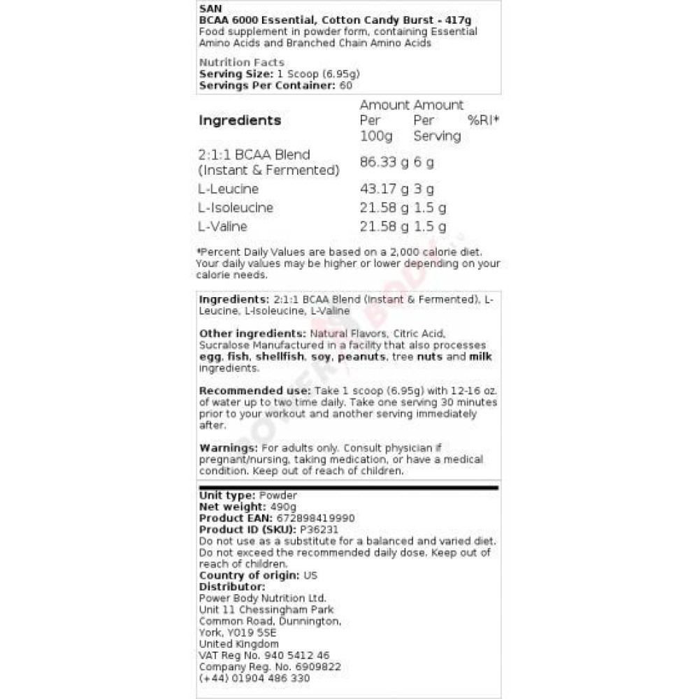 | الاسم التجاري | مختلف، بما في ذلك BCAA 5000 وXtend وMussclePharm BCAA |