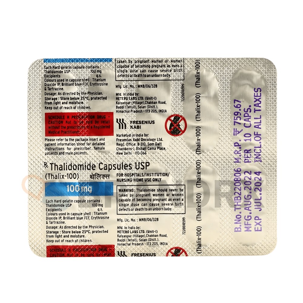 | الاختبار المخبري | غير مطلوب تحديدًا لمراقبة الثاليدومايد نفسه ولكن يُنصح بمراقبة تعداد الدم الكامل واختبارات وظائف الكبد أثناء العلاج |
