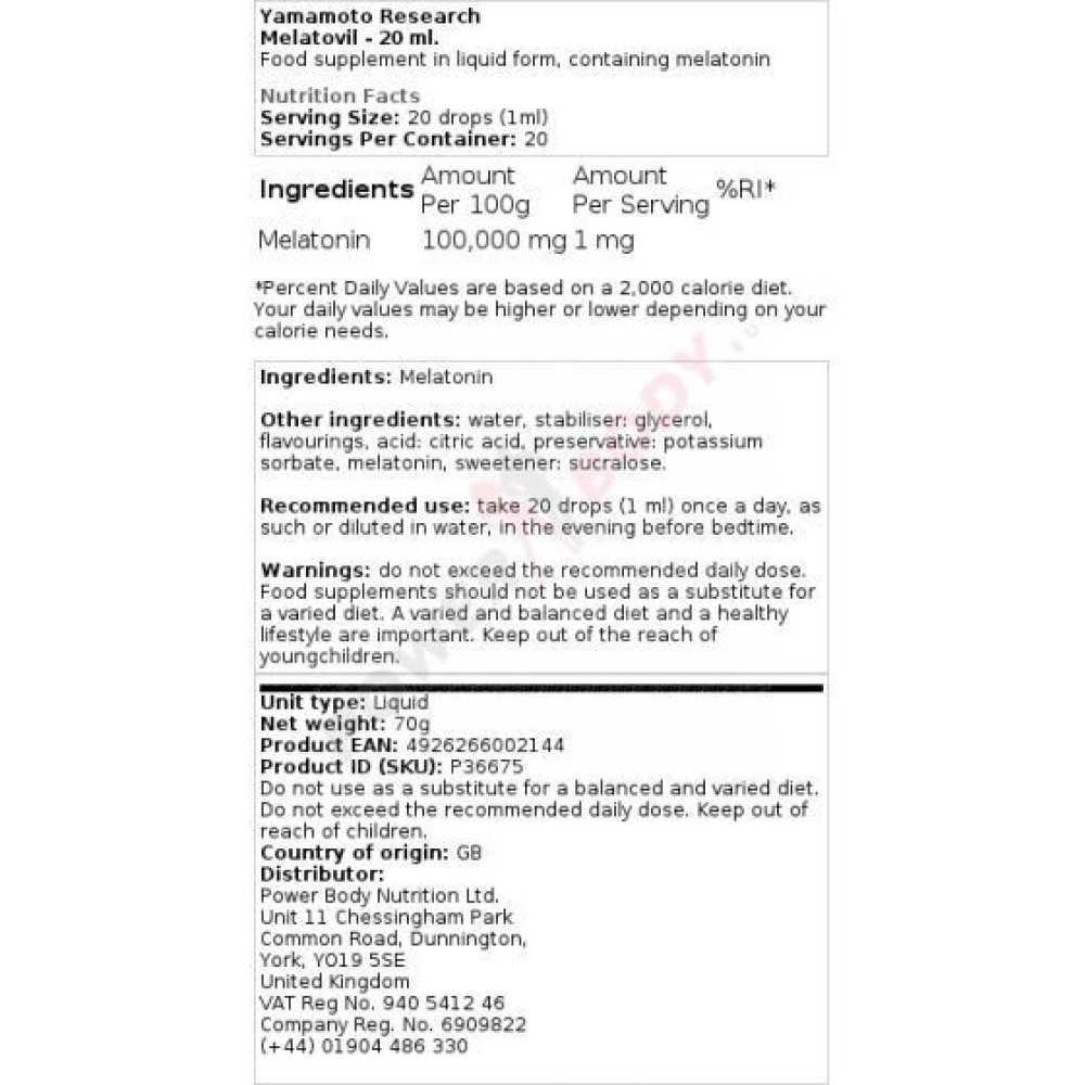 | التأثيرات | يعزز النوم، وينظم إيقاع الساعة البيولوجية، وخصائص مضادة للأكسدة |